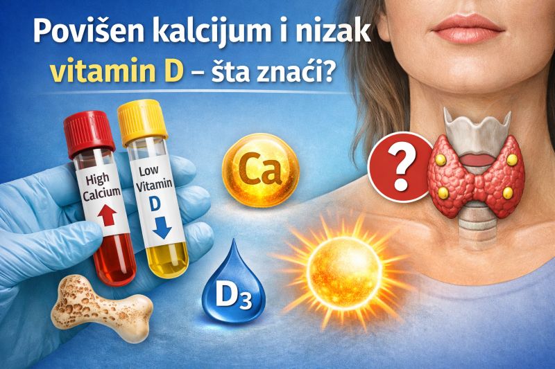 Kombinacija povišenog kalcijuma i niskog vitamina D3 zahteva pažljivu dijagnostiku, a ne kupovinu suplemenata na svoju ruku. Prvi korak je određivanje PTH-a, provera biotina u ishrani i konsultacija sa endokrinologom. Uz pravilne analize urina i krvi, uzrok se može precizno utvrditi i uspešno lečiti, čime se čuvaju vaše kosti i bubrezi.